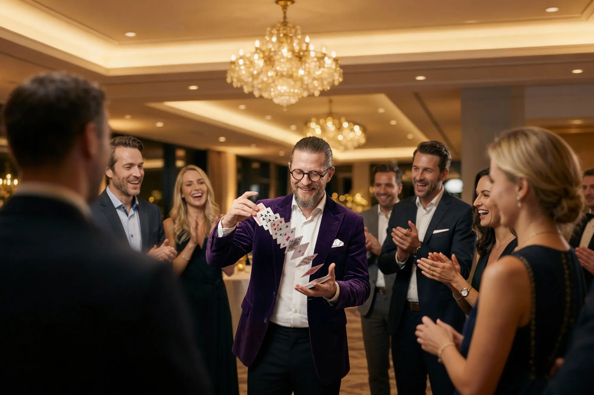 Ich empfehle Format & Platzierung: Walking Act, Tischzauberei, Stand-up – oder kombiniert.